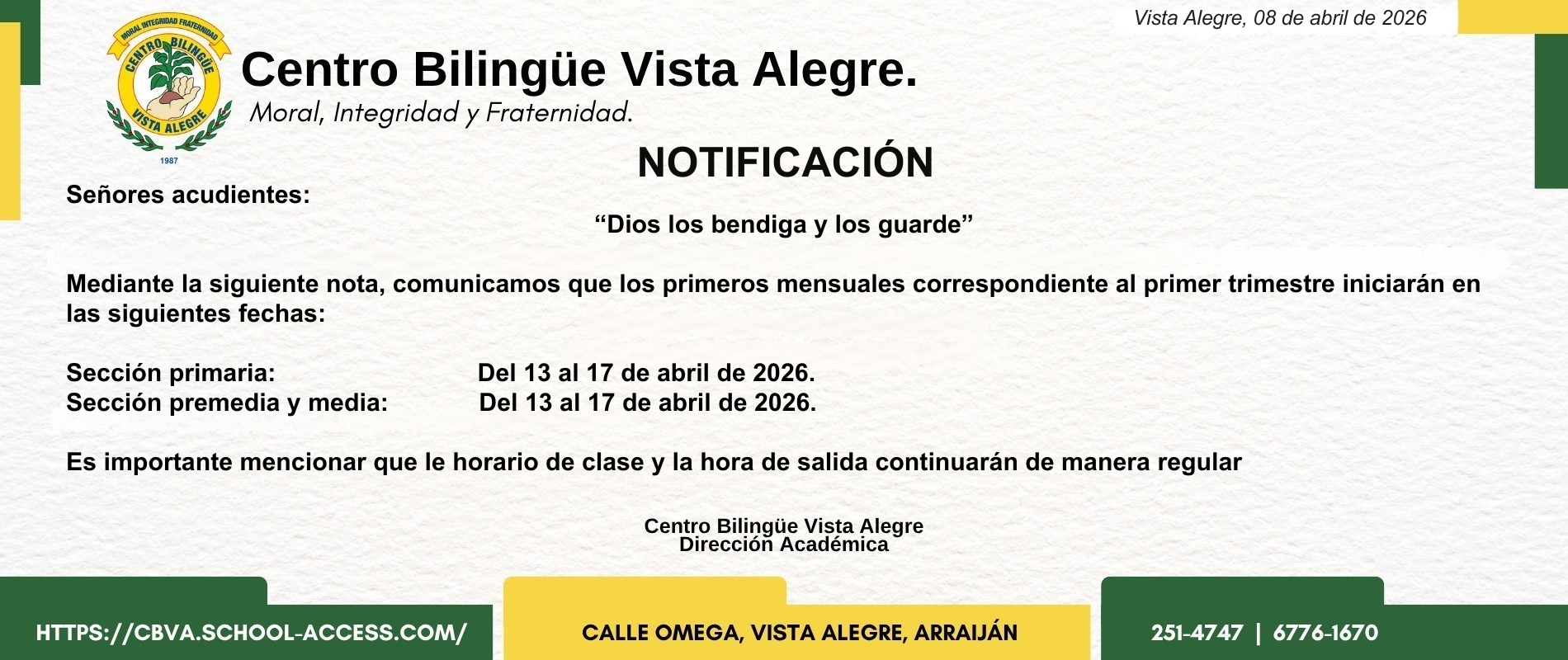 Ver MásEn el Centro Bilingüe Vista Alegre, nos comprometemos con la excelencia educativa en todos los aspectos. Esto se refleja en nuestros altos estándares académicos, la calidad de nuestros docentes, y los logros de nuestros estudiantes. Buscamos constantemente mejorar y superar las expectativas para garantizar una educación de primera clase.